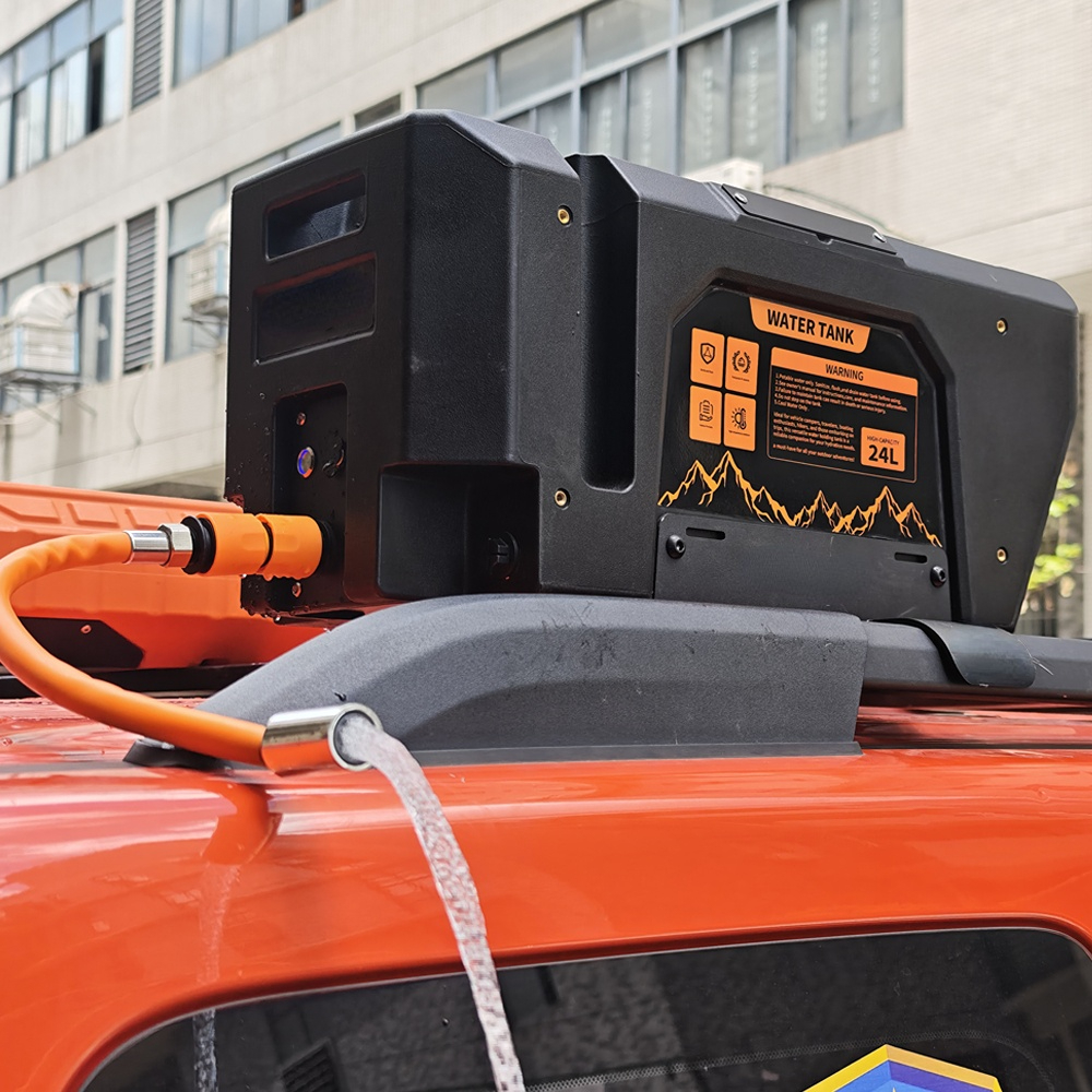 Enjoy instant, battery-powered showers with the RMT0115. This 24L food-grade bucket features an electric pump for effortless water flow and supports flexible roof or ground mounting. Perfect for hassle-free camping.