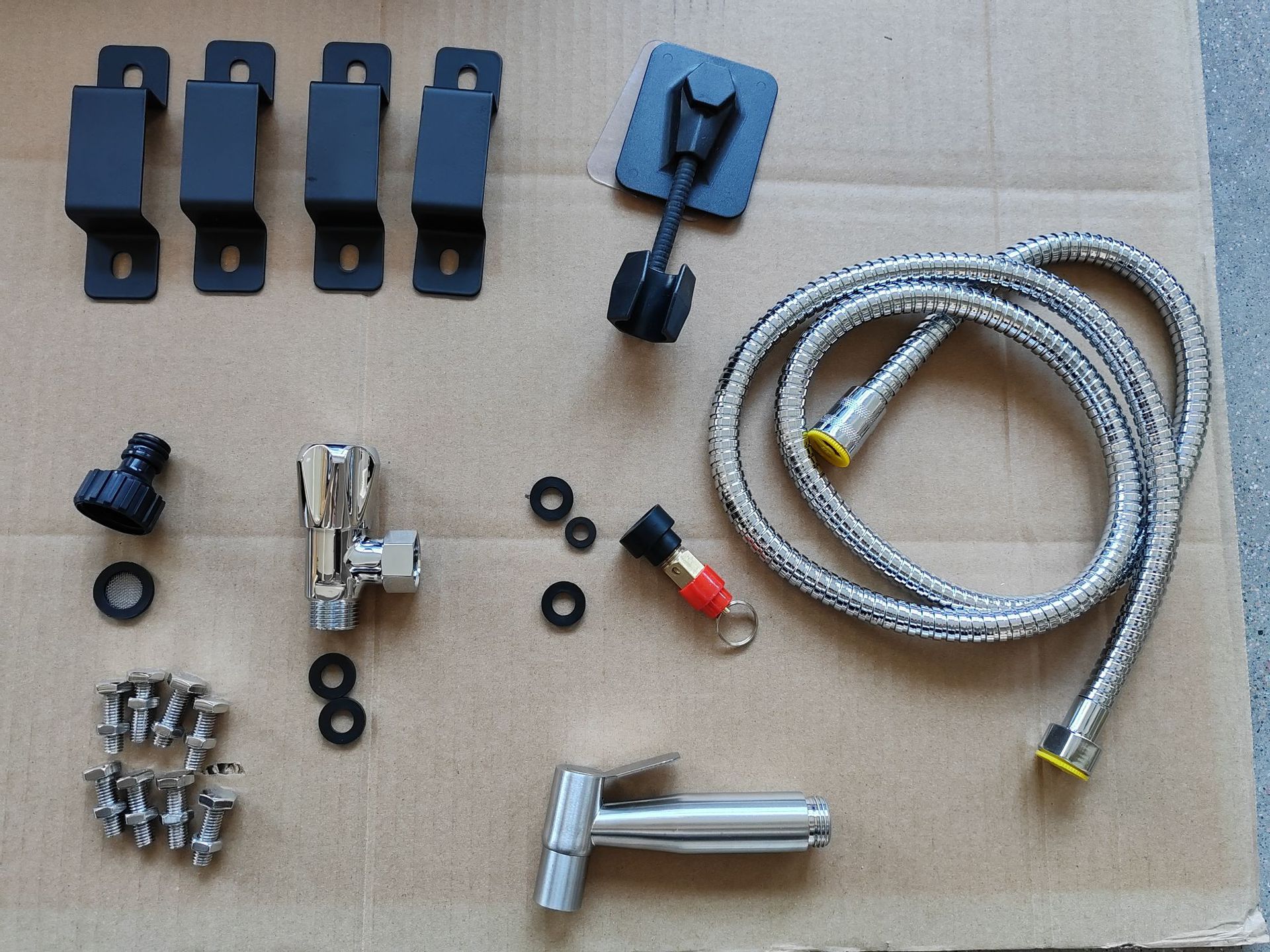 | Description | PVC bodyBrass quick-release valve1.5m shower hoseABS mounting bracketStainless steel shower setCar pole mounting accessories | |
